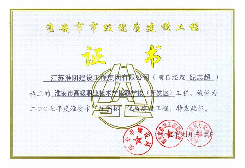 2007年市翔宇杯淮安市高级职业技术学校教学楼(开发区)-纪志超
